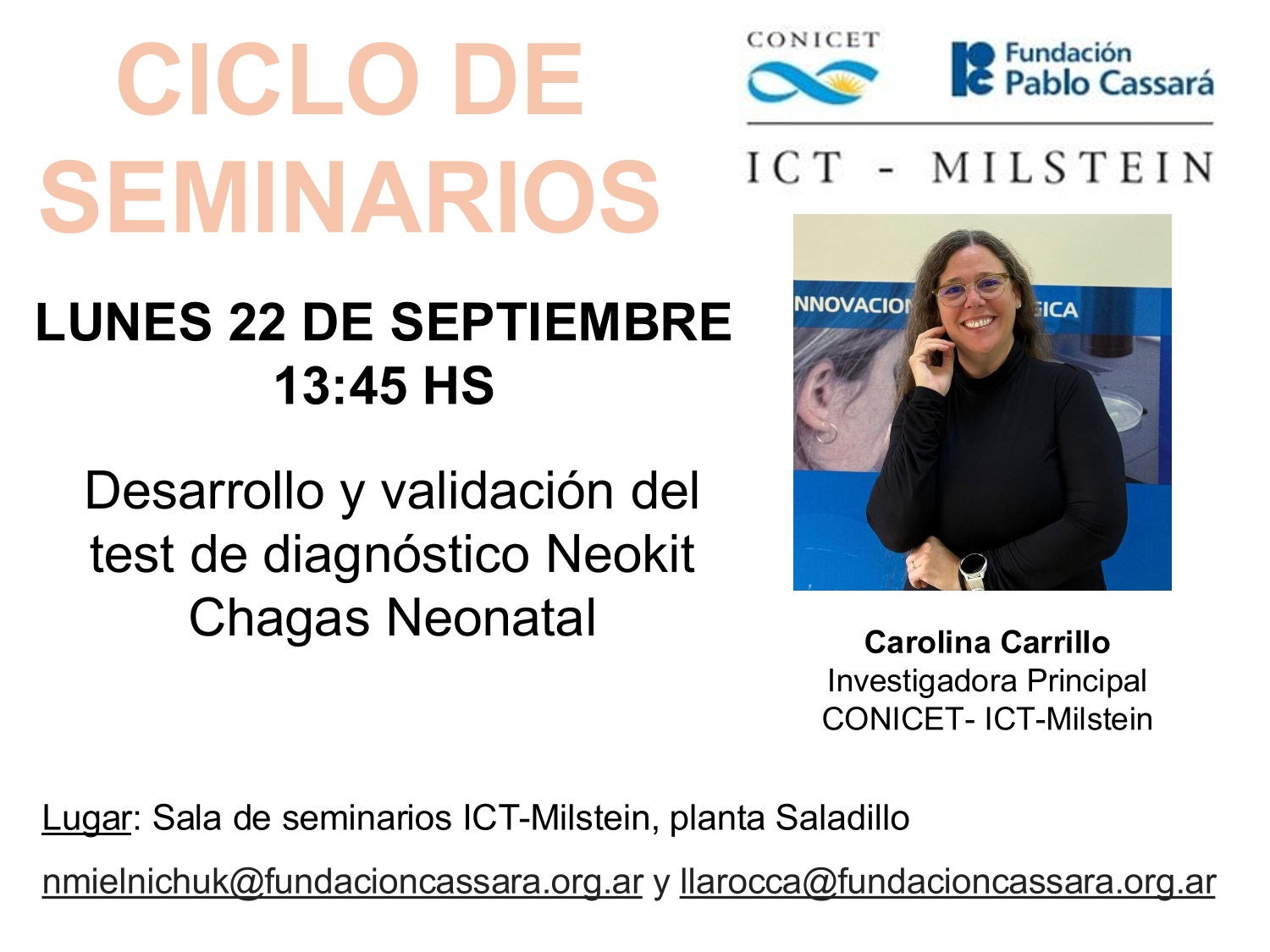 ♦ Lunes 22 de septiembre a las 13:45 hs en el Salón ICT Milstein y estará a cargo de la Dra. Carolina Carrillo♦